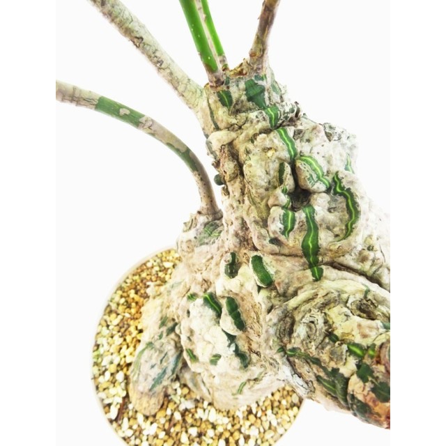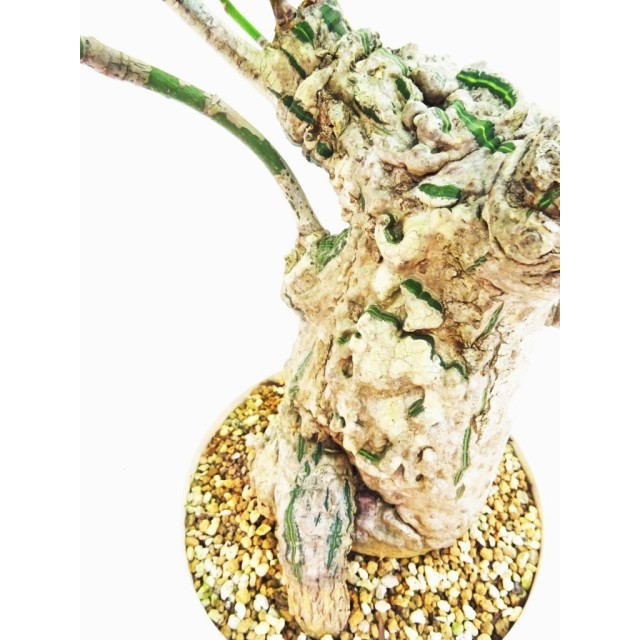 今回のは葉性がコンパクトで纏まるので、小葉選抜で残していた株になります。ココ数年で幹肌の隆起の緑の凹凸も見事になりました。