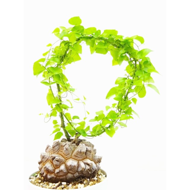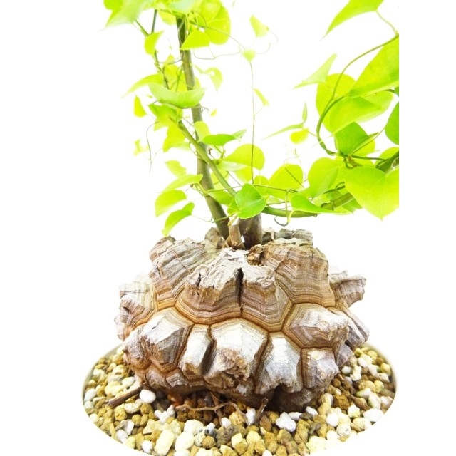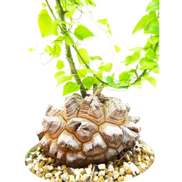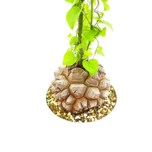 日本に自生する山芋や、自然薯と同じ仲間の植物ですが、この亀甲竜は、まるでカメの甲のようなイモになるため観賞価値が高く、また、乾燥にも強いので、園芸用に扱われる植物です。