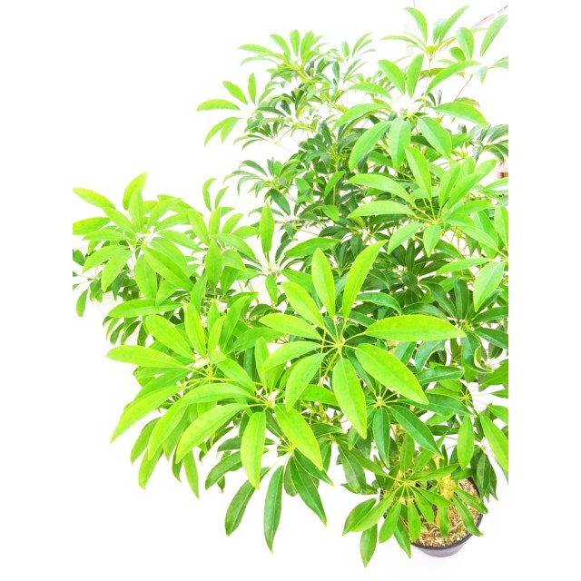 元々の元々。戦後頃、八丈島の某議員先生が旅行した際にひと枝を八丈島へ持ち帰りに庭に植えたのが日本のシェフレラの始まりとされます。