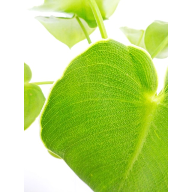 遠目で見ても、『丸葉の可愛らしい何の変哲もない様な取り柄のない様なサトイモ科の植物』ですが、近づいてみると…マジの豚革(ピッグスキン)でして…触り心地は上質なソレ以上の質感です。